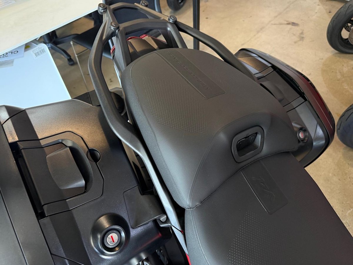 • Touring Features (Travel & Rider): Heated grips & heated seat, touring screen, centre stand, pannier mounts, full connectivity package