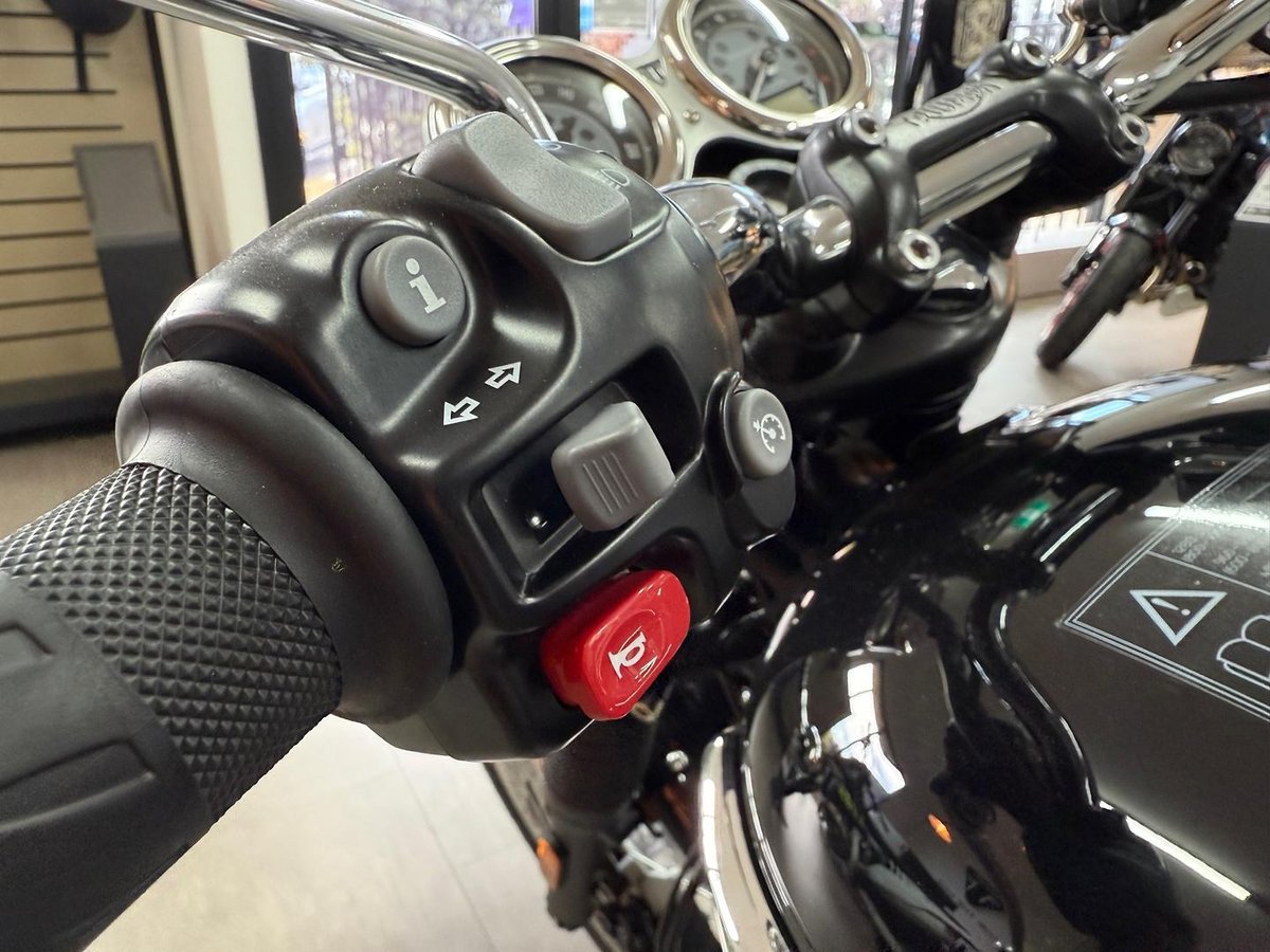 The 2025 Bonneville T120 carries forward Triumph’s timeless classic design while adding modern performance and comfort. With its smooth twin engine, signature exhaust note, and relaxed yet confident ride, it’s built for both city cruising and open-road adventures.